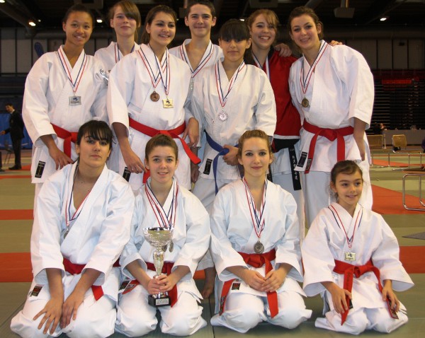 Rare sont les clubs qui peuvent prétendre à de tels résultats, à savoir : 11 compétiteurs et 14 médailles. De benjamin à junior, nos jeunes compétiteurs ont su s’imposer aussi bien en individuel qu’en équipe. En junior, Ophélie Menault termine avec une superbe 2ème place lors de la finale. Emilie Piaumier obtient une très belle 3ème place après plusieurs tours très disputés. Camille Teillet réalise une belle prestation. En cadet, Baptiste Caron, remporte la 1ère place après un parcours sans faute. Baptiste a pu exprimer son talent et sa maitrise durant 4 tours. Il remporte l’or suite à une excellente présentation du kata: Gankaku Farah Aidouni, obtient quand à elle une superbe 3ème place. En minime, c’est Amandine Guibert qui décroche une très belle 3ème place. Marine Daniel et Anaïs Carpentier peuvent être fières de leur prestation. En benjamine, Mélanie Guibert nous offre un très beau parcours avec au bout de 3 tours, une splendide 3ème place. En équipe, les juniors de Saint Germain sur Morin (Maëlys le Gouard, Camille Teillet et Ophélie Menault), surclassés en seniors pour cette compétition terminent avec une très belle 2ème place. Pour sa première participation à une compétition officielle et après seulement 3 semaines d’entrainement, la toute jeune équipe des minimes de Saint Germain sur Morin (Marine Daniel, Anaïs Carpentier et Amandine Guibert) finit avec une excellente 2ème place. Magnifique bilan avec 2 médailles d’or, 2 médailles d’argent, 4 médailles de bronze en individuel et 6 médailles d’argent en équipe. Une fois de plus nos compétiteurs ont su tirer le meilleur de leurs expériences et de leur très bonne préparation lors des entrainements. Il faut noter l’excellent état d’esprit du groupe qui est aussi un atout majeur. Bravo à leur professeur Jean Pierre Gavoille. |