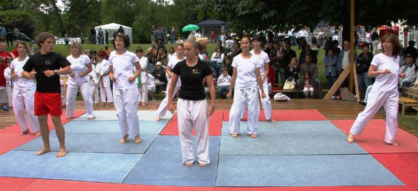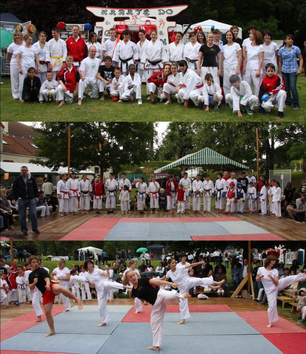 Et 6 mois plus tard, première démo !!!! ![]() Avec la fête au bord de l’eau, c’est l’approche de fin de la saison. Cette année encore le club a présenté de belles démonstrations avec une grande première : démonstration de l’équipe de Body Karaté. ![]() ![]() ![]()