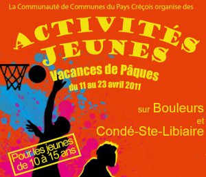Pour les jeunes qui ne partent pas en vacances à Pâques, la Communauté de Communes du Pays Créçois organise des activités sportives et de loisirs, du 11 au 23 avril 2011.