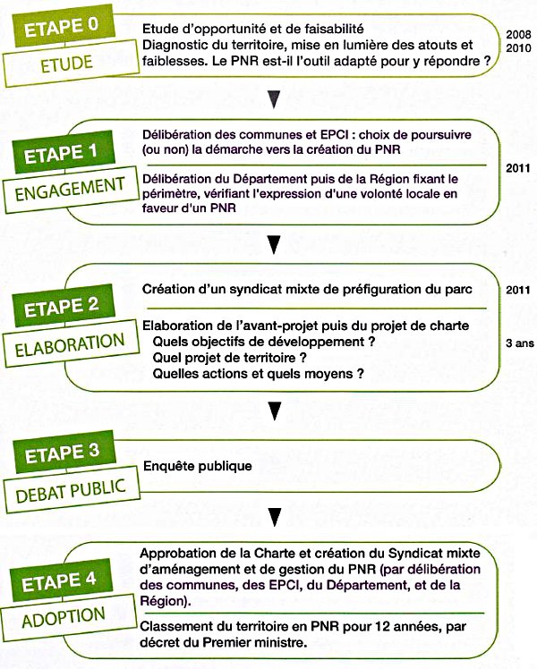 Un décret du Premier ministre validera la création du PNR pour une durée de 12 ans. Cette validation est nécessaire, car les documents d’urbanisme locaux devront être compatibles avec la charte du parc.