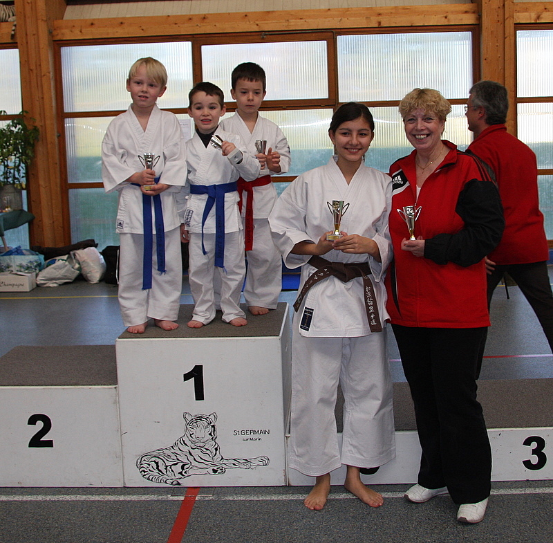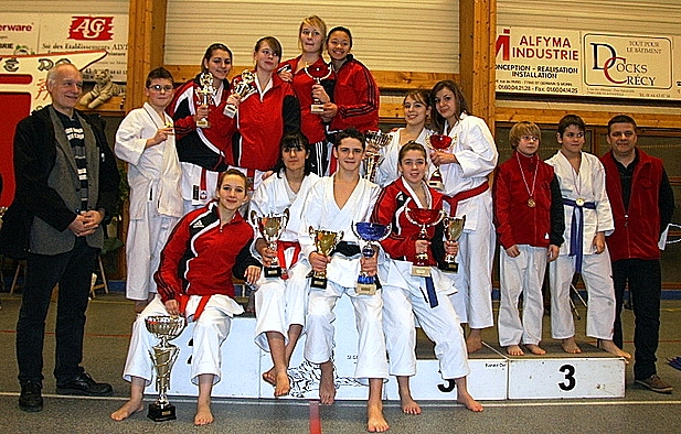 Avec les compétiteurs de l’après midi, nous avons assisté à de très belles prestations. La journée s’est terminée avec une démonstration de la toute nouvelle équipe kata minime féminine (Anaïs Carpentier, Marine Daniel et Amandine Guibert) et de leur ainée de l’équipe kata junior féminine (Camille Teillet, Maëlys Le Gouard et Ophélie Menault) et par les podiums avec en catégorie: Benjamins (M) toutes divisions moins de 1 an: 1er D. BAUMGARTHER Benjamins (F/M) toutes divisions plus de 1 an: 2ème M. GUIBERT / 5ème D. GREUET, 2ème A.GUERREIRO, 7ème C. DUBOIS