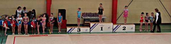 ![]() Que de coupes et de médailles attendent les gagnants ! Les poussines ouvrirent la marche pour Crécy le samedi après-midi. Une chorégraphie au ballon leur valut la première place. ![]() ![]() Derniers conseils avant le passage – une première place bien méritée Le dimanche matin ce fut au tour des individuels (DIR) où Crécy était représenté dans les catégories Benjamines et Juniors/Séniors. Les résultats pour Crécy : ![]() Junior/sénior : Vinrent ensuite les DC2 Cadettes puis Juniors/Séniors ![]() En attendant les résultats Les classements : ![]() La pose finale des cadettes de Crécy