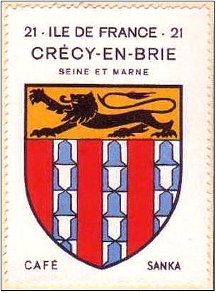 Dans un des précédents articles nous avions vu que le blason de Crécy présenté dans l’armorial des communes de France était celui des Chatillon, anciens seigneurs de Crécy aux XII ème et XIII ème siècles. Pour l’anecdote, j’ai de nouveau croisé cette représentation sur le net. Il s’agit, d’une vignette de collection émise par les cafés « SANKA » vers 1930. Cette marque de café fidélisait ses clients en leur proposant de collectionner des vignettes illustrant les blasons des communes de France. |