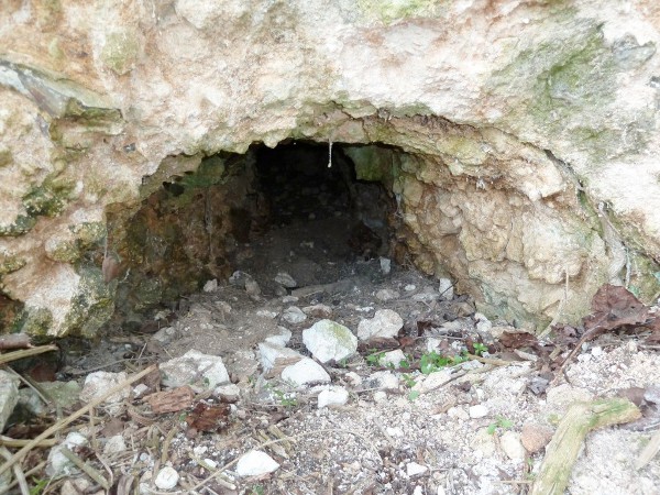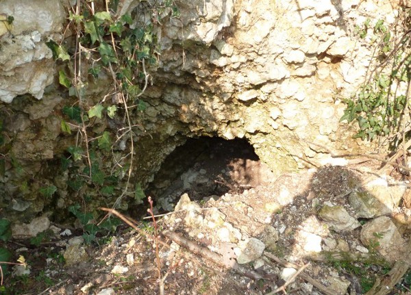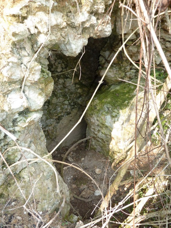 La grotte était donc connue vers 1890. Même avec les indications de IndianaJones, et connaissant le site je n’ai pas su la trouver . C’est l’aventurier lui-même accompagné de son fidèle compagnon à 4 pattes qui me l’a fait découvrir. Et en fait de grottes il y en a plusieurs, qui attendent d’être explorées. On aperçoit une bonne dizaine de mètres accessibles uniquement en rampant, et on devine que cela se poursuit en fait sous le champ Vié (*). L’aventure est parfois tout près de notre porte ! (*) : Contrairement à ce qu’écrit Husson, probablement en ayant mal retranscrit les indications orales des paysans du coin, il ne s’agit pas du "Chanvier" mais du "champ Vié" et c’est bien un champ et non un chemin. JMS |