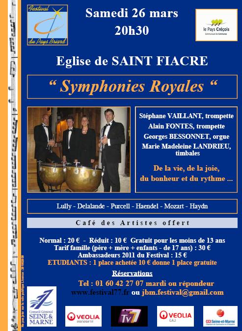 Retenez la date du samedi 26 mars 2011 à 20h30, sur vos agendas. En effet, la Communauté de Communes du Pays Créçois, la municipalité de St Fiacre et le Festival du Pays Briard, organisent un événement exceptionnel à l’église. |
