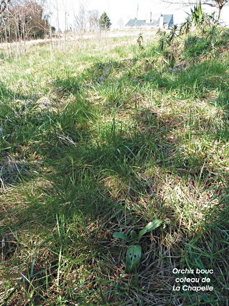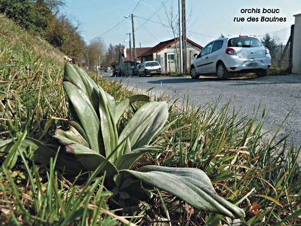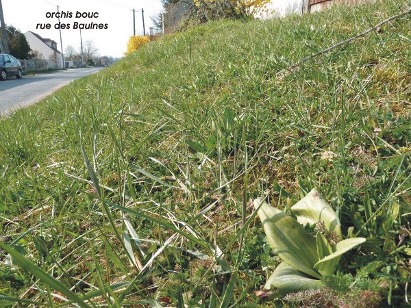 L’orchis bouc, ainsi que les autres orchidées, ont un mode de reproduction très complexe. Les graines, pour germer, ont besoin de trouver dans la terre un champignon microscopique. En pénétrant dans la graine, il forme une symbiose indispensable, assurant la nourriture et le développement de la plante dans les racines. La fécondation est assurée par des insectes. Sur les milliers de graines produites, seules quelques unes trouveront ces conditions pour pouvoir germer. Et cela peut prendre plusieurs années… ![]() Sur les parcelles toujours en friche depuis plus de deux ans de ce qui devrait devenir le futur lotissement du Parré de L’Hôtel Dieu, l’orchis bouc est vouée à disparaître. Ce sont 15 hectares de prairies calcaires, propices aux orchidées, qui seront détruits au profit de nouvelles constructions sur la commune, alors qu’il existe des bâtiments, des maisons qui ne demandent qu’à être réhabilités. Mais la spéculation aura toujours raison… ![]() Avec ce nouvel arrivant, l’écosystème du coteau va s’en trouver modifié. Les populations d’insectes comme les grillons, principales sources de nourritures pour l’orvet et les autres habitants à poils ou à plumes, vont se restreindre. Alors pourquoi en parler avant sa floraison ? Tout simplement pour vous signaler leur présence car, compte-tenu de leur implantation, leur floraison risque d’être compromise dès les premières tontes ou piétinements, et leur avenir peut s’en trouver menacé.