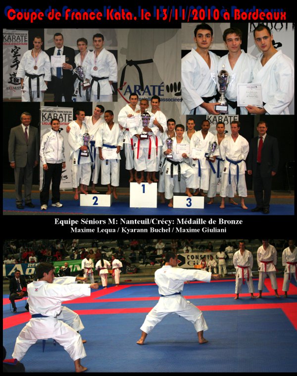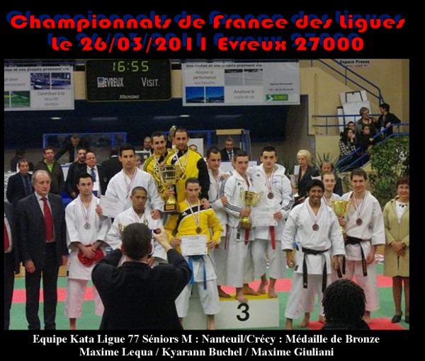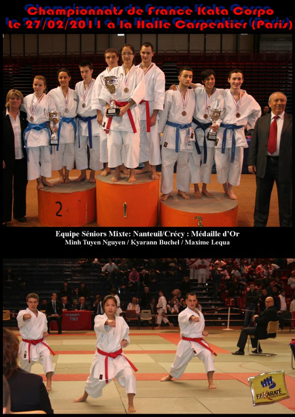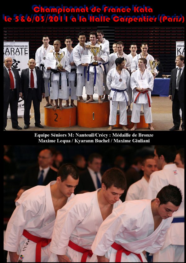 ![]() En effet, c’est en début de saison 2010 2011, après le départ de David que Jean Pierre Gavoille, professeur et coach des clubs de l’ASK refait son Equipe Kata Séniors. Maxime Lequa et Kyarann Buchel s’associent à Maxime Giuliani, jeune compétiteur de très haut niveau, faisant parti de l’Elite IDF et appartenant au Club de Nanteuil, pour constituer cette Equipe Séniors. La 1ère compétition fut les championnats d’Ile de France avec un premier podium et le titre de Vice Champion d’IDF, s’en suivront les championnats de Seine et Marne, qualificatifs pour les championnats de France où l’équipe de Kyarann, Maxime et Maxime viendra chercher le titre de Champion de Seine et Marne et le billet pour les Championnats de France à Paris. ![]() Des résultats inespérés pour cette très jeune équipe.7 compétitions = 6 podiums et une 5ème place. ![]() Résultats de l’Equipe pour la saison sportive 2010/2011 Championne de Seine et Marne Vice-championne d’Ile de France 5ème à la Milon Cup International 3ème de la Coupe de France Championne de France Corpo 3ème aux Championnats de France 3ème aux championnats de France des Ligues ![]() Cette magnifique 3ème place aux prestigieux championnats de France, prédit un bel avenir à cette très jeune Equipe (20 ans de moyenne d’âge). ![]() Un grand bravo à vous 3 pour ces excellents résultats et un grand bravo au Coach JP. ![]() ![]() Toutes les photos des compétitions sur notre site : katatestk.com |