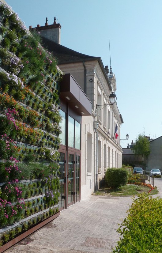 C’est gentil tout plein ces histoires de fleurettes collées sur le mur, mais ce n’est pas très beau pour autant, et on se demande bien ce que cet ensemble fait là. Cela dit ce n’est pas pire que les deux remblais qui avaient été installés pour supporter les blasons en fleurs et qui heureusement ont été démontés depuis, ni plus pire que les potées de géraniums accrochées aux fourches patibulaires aux entrées de la ville et aux lampadaires.