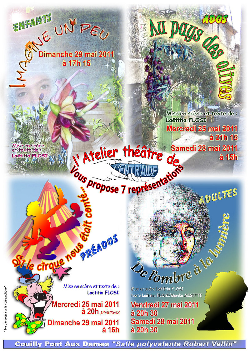 jouée par la troupe de l’Atelier « Enfants ». Chloé est une jeune fille qui souffre d’une étrange maladie… Depuis un certain temps, elle n’a plus d’imagination. Sa soeur lui propose de la retrouver en passant l’après-midi dans le jardin. Après quelques instants et contre toute attente, d’étranges personnages apparaissent et font vivre à Chloé de drôles d’aventures.
