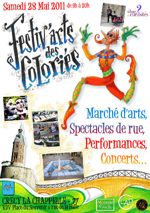 Le FESTIV’ARTS des Coloriés aura lieu à CRECY-la-CHAPELLE le 28 mai 2011 de 9h à 20h place du monument aux Morts et rue de la Halle.