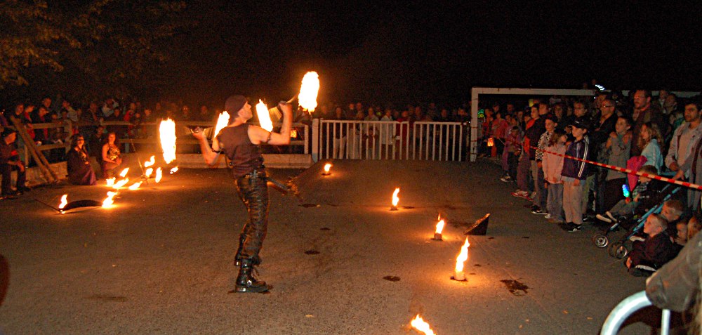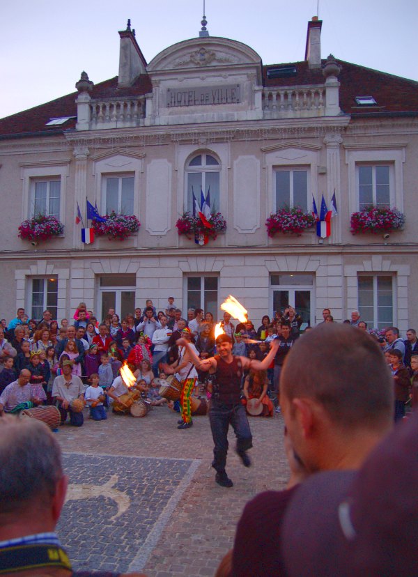 Tout a commencé devant l’hôtel de ville où une foule nombreuse s’est amassée pour assister à un spectacle autour du feu. La retraite aux flambeaux s’est alors dirigée vers le Pré Manche où eut lieu le feu d’artifice. Ce fut un spectacle différents des autres années, sans musique, en apparence plus simple mais peut-être plus audacieux. Je vous laisse regarder les photos. La soirée s’est terminé par un petit bal sur la parking du Pré Manche.