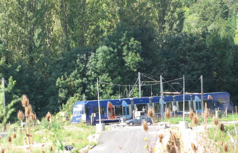Et voila le tram train du PNR de l’abri et de mes deux Reins qui file au fond du parking …