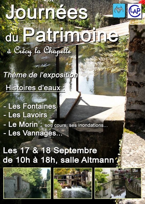 Le CLAP (Comité Local Animation et Patrimoine) de Crécy la Chapelle vous racontera des « Histoires d’eaux », une exposition sur le Grand Morin, ses lavoirs, ses fontaines, …