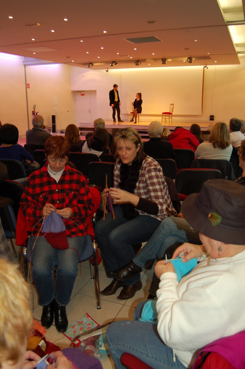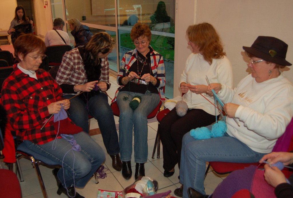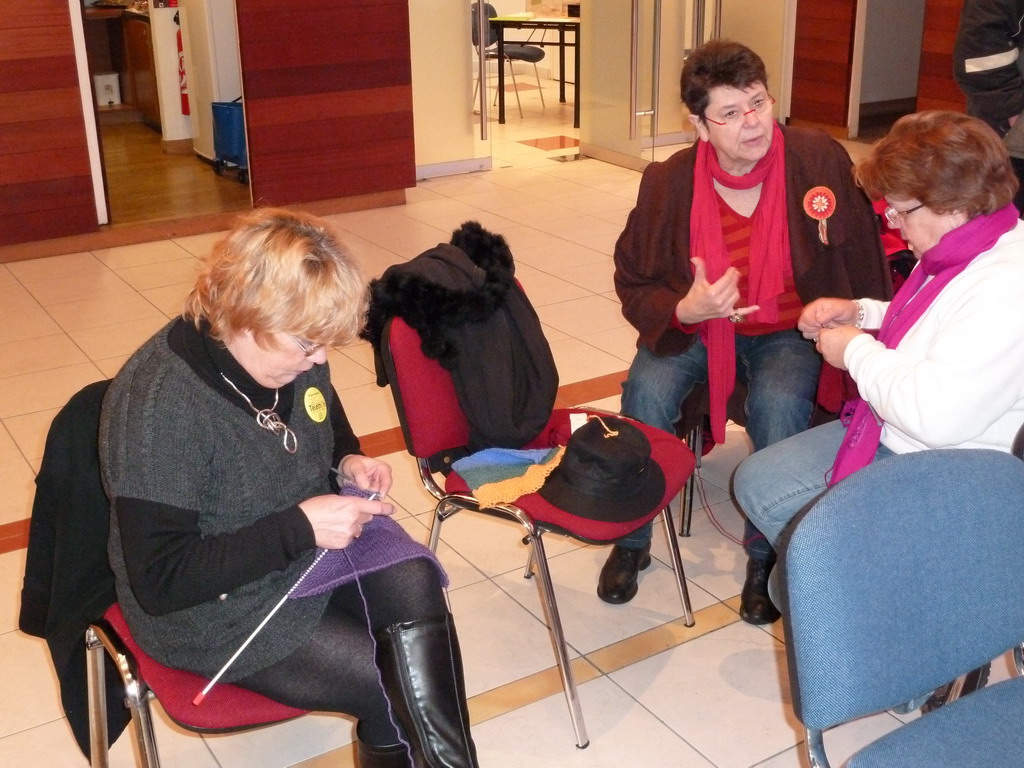 Ces dames se lancent dans le défi, tricoter une écharpe à ce cher beffroi afin qu’il n’ait pas trop froid cet hiver.