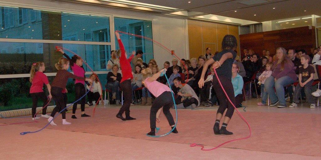 Au nom du club de GR, je ne peux que remercier tous les parents (et les enfants) qui ont accepté que leurs enfants participent au téléthon et s’investissent pour préparer une chorégraphie, et ils ont été nombreux à répondre à l’appel et à venir applaudir leurs enfants. J’ai l’impression que c’est la manifestation qui a le plus rempli la salle Altmann au cours du téléthon.