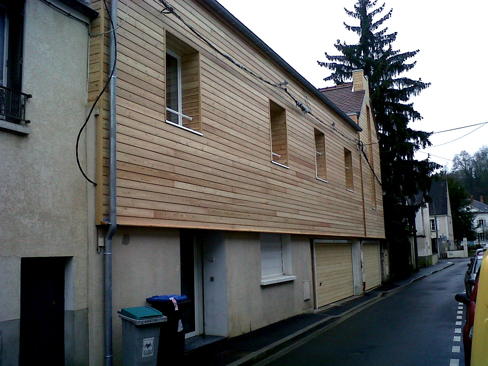 La maison en bois a de nombreux avantages. Maison en bois ne veut pas dire nécessairement façade en bois. J’ai travaillé quelques années sur le sujet et on peut réaliser une construction à ossature bois, tout lintégrant dans un contexte architectural et urbain existant, ce qui n’est pas le cas ici. Il ne s’agit d’ailleurs pas non plus d’une construction à ossature bois, sauf peut-être pour une partie, celle qui présente un pignon en façade. On peut accepter plus facilement une certaine diversité des styles dans un habitat individuel diffus, pavillonnaire, ou plus généralement dans des quartiers neufs. Les petits collectifs en ossature bois sont aussi de plus en plus nombreux, boustés par les labels HQE. Enfin, la France possède de grosses réserves de bois de structure en résineux dont la valorisation est un souci constant des « autorités » depuis 30 ans. tout cela devrait, en théorie aller dans le sens d’un développement de l’habitat à ossature bois.
