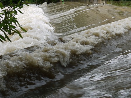 Effectivement, il y avait du débit ce 14 juillet là, mais vers 17h. Le ressac était presque aussi haut que le niveau supérieur du Morin.