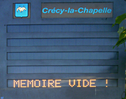 C’est vrai que le panneau d’affichage ce week-end était tout tristounet d’annoncer qu’il avait la mémoire vide. A noter le point d’exclamation qui lui confère un peu d’humanité. Un panneau qui est capable de s’étonner de n’avoir rien à annoncer ne peut que susciter la sympathie.