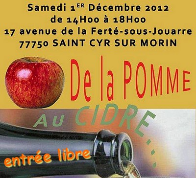 C’est dans le cadre du Musée Départemental de Seine et Marne de SAINT-CYR-SUR-MORIN (17, avenue de la Ferté-sous-Jouarre) que la "Commanderie des Gouste-Cidre" organise son 13ème concours du Meilleur Cidre d’Ile de France. Avant la proclamation des Résultats, une Conférence sur le Thème des "AROMES DES CIDRES" sera assurée par André Ducoulombier, ancien Directeur de l’Interprofession cidricole. Participation des Croqueurs de Pommes de Brie et Gâtinais. ENTREE LIBRE |