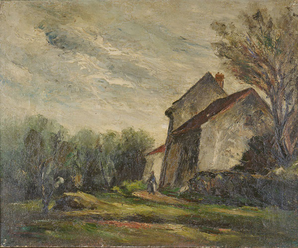 ![]() Les ombres portant vers la gauche du tableau nous indiquent le côté Nord.Le chemin forme un virage venant du Sud à droite de la toile, vers l’Est. Lesdeux maisons en avant-plan ne se touchent pas car on peut voir la lumière entreles deux. La maison en arrière- plan, avec son ouverture pour le pigeonnier,est séparée des autres par le chemin.