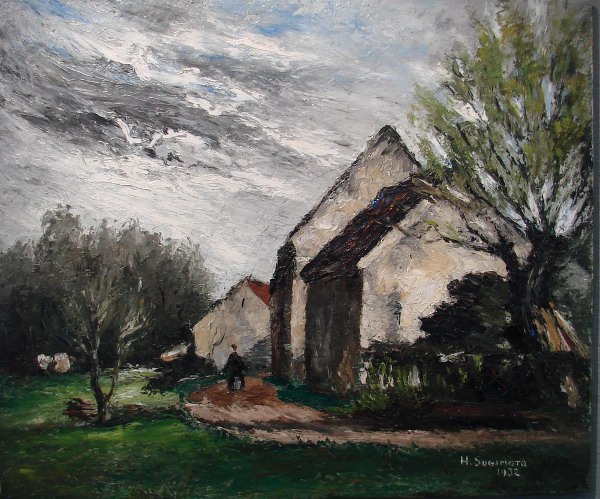 Selon ces indices et les photos aériennes de 1936 extraites du sitegeoportail.fr, le lieu le plus approprié se trouverait ici… rue de la Ronce ![]() Voici un détail de la rue de la Ronce tourné dans le sens de l’expositionde l’œuvre. ![]() Et c’est à ce moment que l’on s’aperçoit qu’Henry Sugimotodevait aimer les effets d’optique car il n’y a pas que trois maisons dans cetterue et qu’entre l’avant-plan et l’arrière-plan au moins 50 mètres de distance. ![]() D’ailleurs, nous retrouvons cette même perspectiveaujourd’hui comme sur la toile de la mairie… ![]() Ou la perspective de « Winter » de 1931 de nosamis du Japanese American National Museum, qui selon mes sources, seraientravis de découvrir ces lieux lors de leur prochain « pèlerinage» ! Mais Voulangis et la vallée du Grand Morin, terred’inspiration, abrite encore dans son patrimoine pictural des œuvres àlocaliser. Un autre peintre américain avait élu domicile à Voulangis. Arthur B.Carles nous a laissé quelques œuvres de son passé voulangeois comme« Somewhere in France, Voulangis » de 1921, qui pourrait bien êtrerebaptisé aujourd’hui… A suivre … Sources : – H. Sugimoto « Winterat Voulangis », 1931 : Japanese American National Museum de LosAngeles – H.Sugimoto, 1932 ,collection de la Mairie de Crécy La Chapelle – Geoportail.fr |