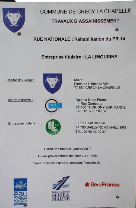 Voici deux panneaux de chantiers en place dans Crécy en ce début d’année 2013. Le premier est situé sur la RD934 (Rue nationale – près de la piscine), il nous avertit de l’imminence d’un début de chantier qui concerne des travaux d’assainissement (prévu en janvier). Le second n’est pas très éloigné du premier. Planté dans la rue de la Ferté, il nous informe de la création d’un nouveau lotissement. L’affiche nous laisse penser que ce lotissement est communal, mais ce n’est peut-être pas le cas. Nous comptons sur les commentaires des Brionautes pour obtenir des précisions à ce sujet. En attendant, voici le premier jeu de l’année 2013. Il y a, sur ces panneaux, quelques erreurs cocasses. Il en est une qui a déjà été observée à une autre occasion et signalée du même coup aux autorités. Sauriez-vous identifier ces anomalies ? |