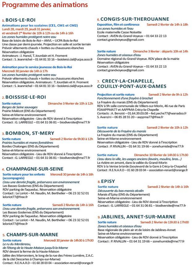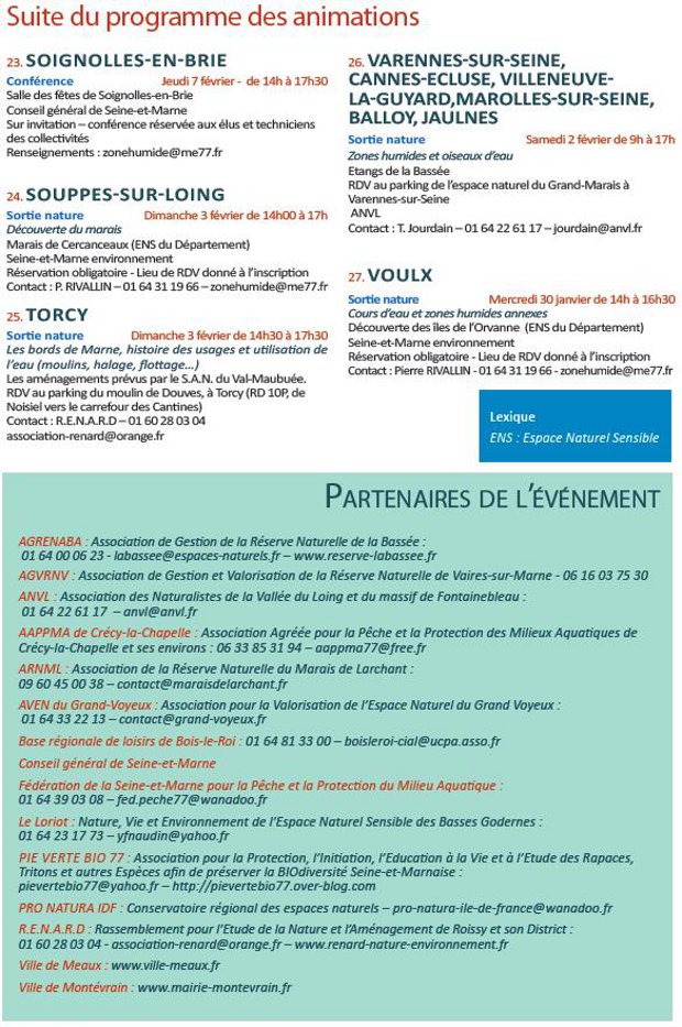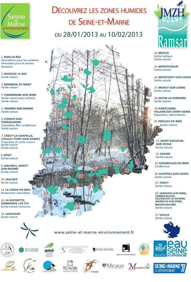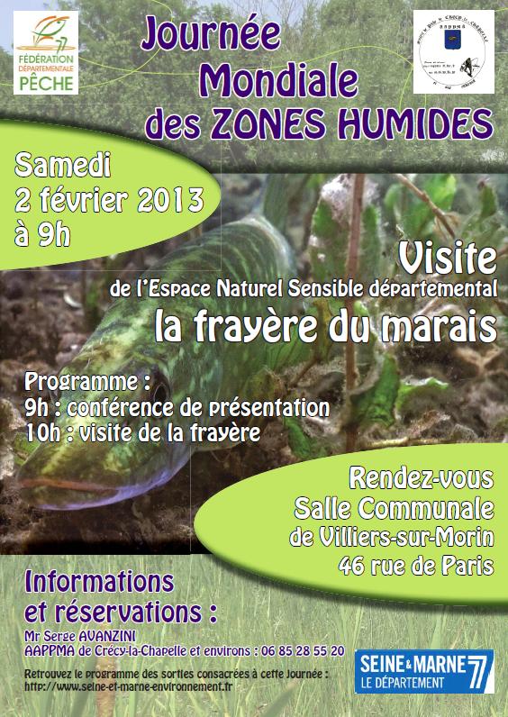 Le samedi matin 2 février 2013 : L’AAPPMA de Crécy la Chapelle et ses environs, (Association Agréée pour la Pêche et la Protection des Milieux Aquatiques) organise à Villiers-sur-Morin une vidéo projection et visite du site, de la frayère du marais.