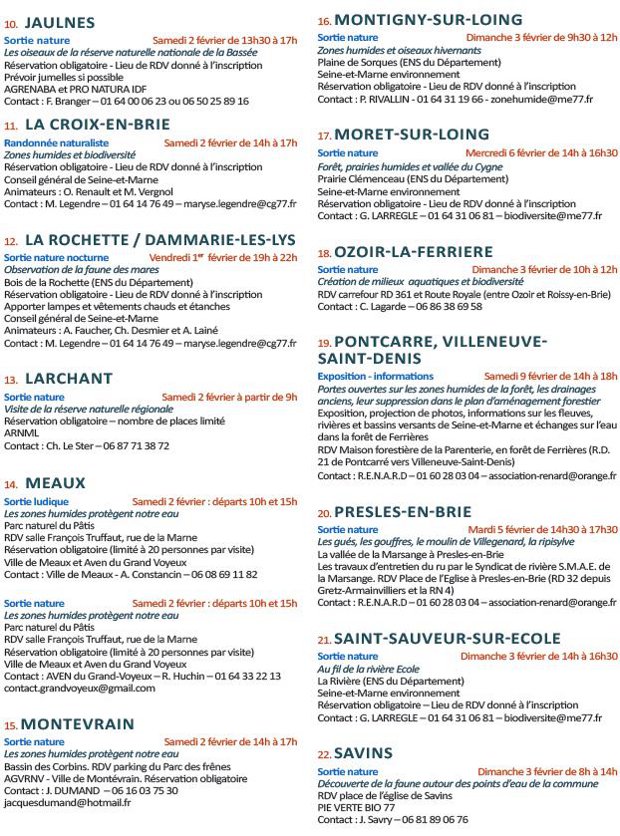 Programme : – 9h00 à 10H00 : salle communale 46 rue de Paris (passage derrière le Cabinet Médical) à VILLIERS SUR MORIN 77580 projection vidéo, pour décrire le fonctionnement de la frayère, le cycle biologique du Brochet et la nécessité d’un tel dispositif compte tenu de la morphologie et la gestion des débits du Grand Morin. – 10h00 : sortie pour la visite de la frayère et observation quand a son fonctionnement. (Prévoir des bottes) Cette vidéo projection et visite est animé par Monsieur Alban Benoist. Agent de Développement Animation et en Halieutisme.