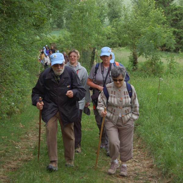 La photo a été prise lors de la randonnée gourmande du 15 mai 2011 à Saint-Fiacre. Les retraités sont de grands adeptes de la randonnée, ils ont raison c’est bon pour la santé à tout age. On aura reconnu les casquettes bleu clair du club de Crécy.