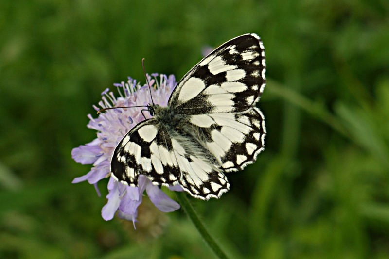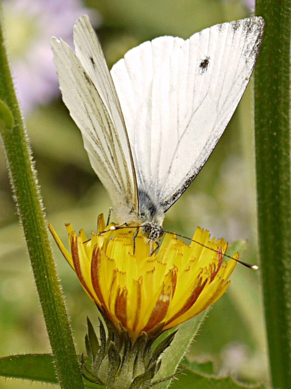 Quand on regarde bien les photos (même si elles ont été sélectionnées sinon vous en auriez eu… au moins 96 !), les abeilles et papillons photographiés se nourrissent souvent sur la même fleur (la violette, qu’on nomme scabieuse des champs) ou sur un simple pissenlit.