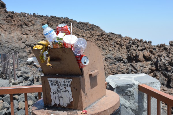La photo ne représente pas une poubelle voulangeoise. Elle a été prise au sommet du mont Teïde à 3550m, c’est probablement la poubelle la plus haute d’Espagne.