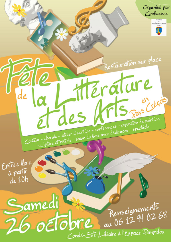 | L’Association Confluence organise la Fête de la Littérature et des Arts le samedi 26 octobre 2013 à partir de 10h à l’espace Pompidou de Condé-Ste-Libiaire.
