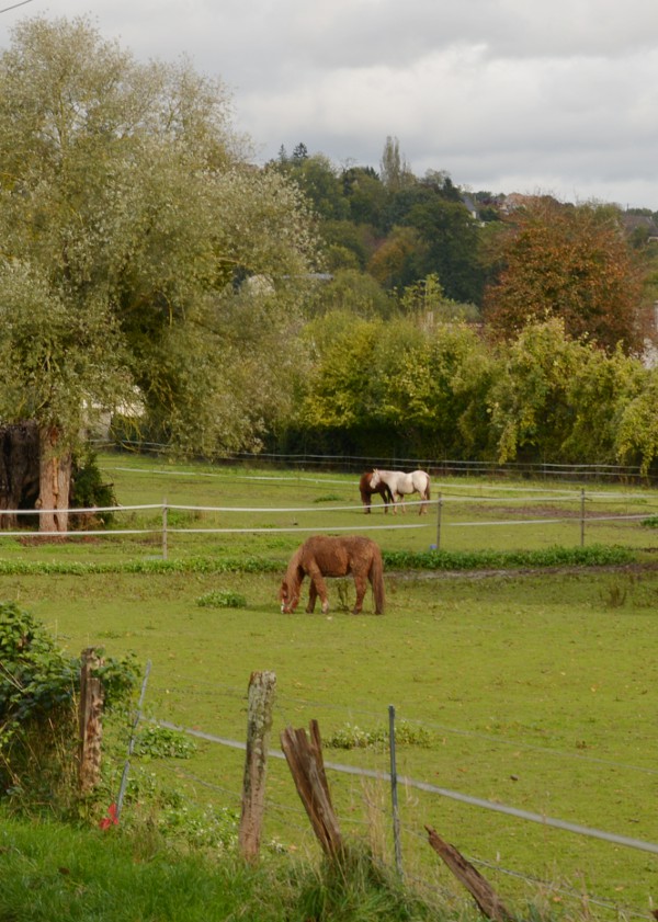 Oui, pour la photo, j’ai occulté les énormes panneaux situés à chaque bout pour me concentrer sur l’image bucolique de ces chevaux paisibles, derniers témoins d’un bonheur campagnard bientôt disparu …