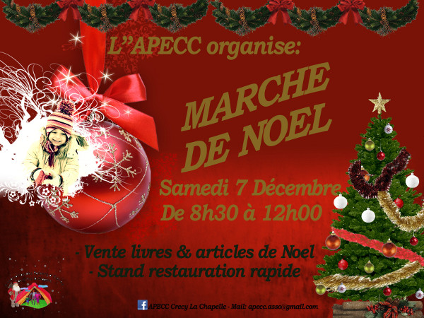 L’association des parents d’élèves de l’école primaire de Crécy-la-Chapelle organise un marché de noël le samedi 7 décembre.
