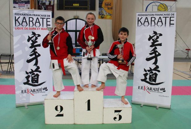 Chez les juniors, Maëlys Le Gouard s’impose sur la plus haute marche du podium et remporte le titre de Championne de Seine et Marne. Marine Daniel obtient une belle place de Vice Championne de Seine et Marne. Chez les minimes, Margot Resseguet obtient une belle place de Vice Championne de Seine et Marne, Dawson Baumgarther une 3e place et Marvin Greuet une 5e place. Chez les benjamines, Alizée Daniel obtient une belle place de Vice Championne de Seine et Marne. Elle est suivie par Emelie Shigo pour la 3e place. Les benjamins ne sont pas en reste avec une 3e place pour Clément Roumieux, une 5e place pour Tanguy Andrey et une 7e place pour Wilfrid Hivelin. Chez les pupilles, les résultats sont là avec 2 belles places de Vice champion de Seine et Marne pour Noah Greuet et Mathis Weber ainsi qu’une 3e place pour Praline Baumgarther. A noter une belle participation de Dylan Greuet chez les cadets ; de Jade Le Provost et Oxana Riant chez les minimes ; d’Elisa Lefevre, Nancy Imbart, Léna Toumoulin, Lilian Chéron, Nicolas Duterlay, Kévin Rabault, Etienne Strainchamps, Kévin Vialle et Matthias Biechler chez les Benjamins ; de Dounia Fertate chez les pupilles. Le club Karaté Do Saint-Germain-sur-Morin a présenté 8 équipes des plus motivées et qui remportent aussi de superbes places. Chez les Benjamines/Minimes : Jade le Provost, Margot Resseguet et Alizée Daniel obtiennent une belle place de Vice Championne de Seine et Marne. Chez les Benjamins/Minimes : Marvin Greuet, Sanjay Manassé et Wilfried Hivelin obtiennent la 3e place. Chez les Benjamins : Lilian Chéron, Etienne Strainchamps et Matthias Biechler obtiennent une place de Vice Champion de Seine et Marne ; Clément Roumieux, Nicolas Duterlay et Kévin Rabault obtiennent une 3e place ; Kévin Vialle, Matthew Dolmazon et Tanguy Andrey obtiennent la 5e place. Chez les Benjamines : Emeline Shigo, Nancy Imbart et Léna Toumoulin obtiennent une 3e place. Chez les pupilles : Mathis Weber, Praline Baumgarther et Noah Greuet obtiennent une belle place de Vice Champion de Seine et Marne. Chez les poussines, une mention spéciale pour cette toute jeune équipe : Lisa Rabault, Mathilde Duterlay et Manon Dejoux pour leur très belle participation. C’est une très belle performance sur l’ensemble des catégories, en individuel ou en équipe, qui montre une fois de plus la grande qualité des cours de Jean Pierre Gavoille, qui année après année, sait propulser ses compétiteurs sur les plus hautes marches des podiums.