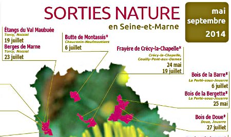 De mai à septembre, ce sont près de 35 sorties qui sont organisées les week-ends sur des sites de seine-et-marne où la nature est encore préservée :faune, flore, marais, bois, espaces sensibles, … Retenez vos dates. |