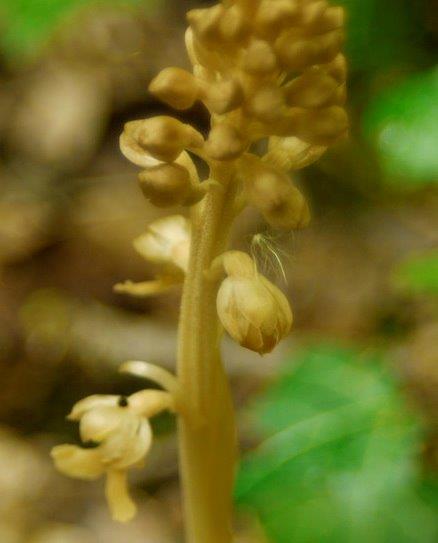 Cette espèce préfère l’ombre desbois… mais aussi les bordures en brique et en ciment le long de la maison. Desemplacements où elle peut trouver de l’humidité sans avoir le soleil en direct.Les feuilles sont ovales et font 3 cm environ. Sa taille varie entre 15 et 40cm. Les fleurs sont peut ouvertes. Cela lui permet une pollinisation parelle-même (autogamie) si aucun insecte ne se présente. Néottie nid-d’oiseau (Neottia nidus-avis – (Linné) L.C.M. Richard 1817)