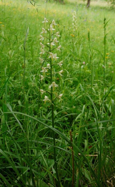 L’amplitude écologique de cette espèce est importante, de pleine lumière à ombre. Par contre l’espèce régresseavec la fermeture du milieu où elle prospère… par le manque d’entretien des terrains. Elle est présente sur lescoteaux de La Chapelle et le coteau de Serbonne, non loin du fameux rocher dissimulé sous les arbres. Elle mesure entre 40 et 90 cm et les fleurs s’épanouissenten premier du bas de l’inflorescence. Céphalanthère pâle(Cephalanthera damasonium – Millier) Druce 1906, Cephalanthera pallens – L.C.M. Richard 1818,Cephalanthera grandiflora – S.F. Gray 1821)