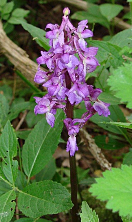 Cette espèce prolifique est considérée comme pionnière. Onla retrouve sur de nombreuses pelouses, de plein soleil à mi ombre… et mêmetondues. Par contre, elle ne fleurit paschaque année. Sa floraison reste irrégulière. Sa taille varie entre 15 et 60cm, avec 5 à 15 fleurs. Mais comme pourl’Ophrys mouche, j’en ai observé que 2 à chaque fois et de même dans leursrenouvellements… Je ne sais toujours pas pourquoi il n’y a pas plus de fleurssur chaque pieds ! Les pétales sont velus. Le labelle ventru avec deuxprotubérances cornus très velus et d’un appendice jaune vif dirigé versl’arrière. Orchis pourpre (Orchis purpurea – Hudson 1762)