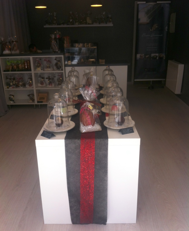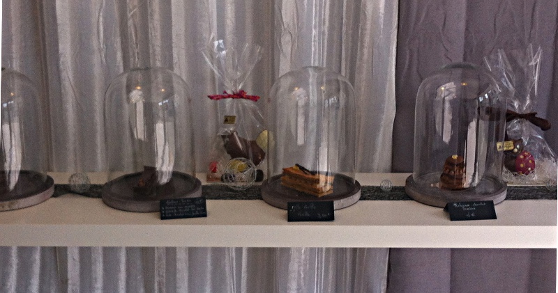 Toujours notre chocolatier de la place Camus. Il a mis les gâteaux sous cloche :