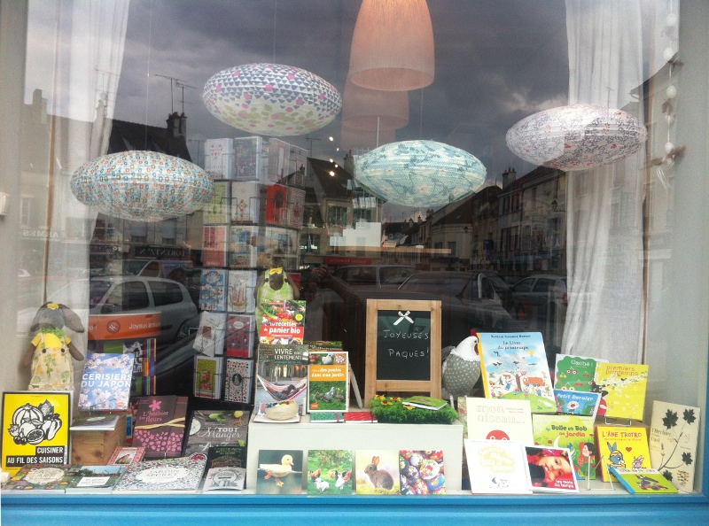 Nos gentilles libraires, place du Marché, n’ont pas loupé l’occasion de sortir les cocottes en papier !