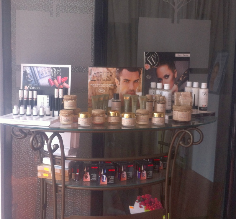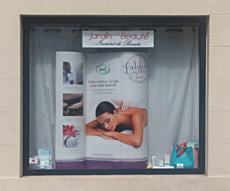 Rue du Général Leclerc, Le Jardin de la Beauté. On masse avec du chocolat ?Deux vitrines axées sur le naturel.