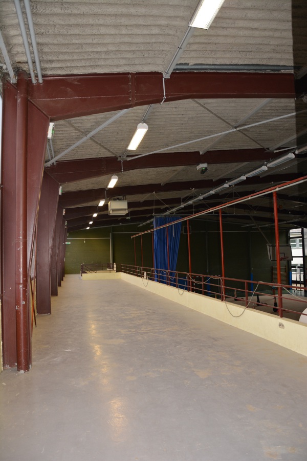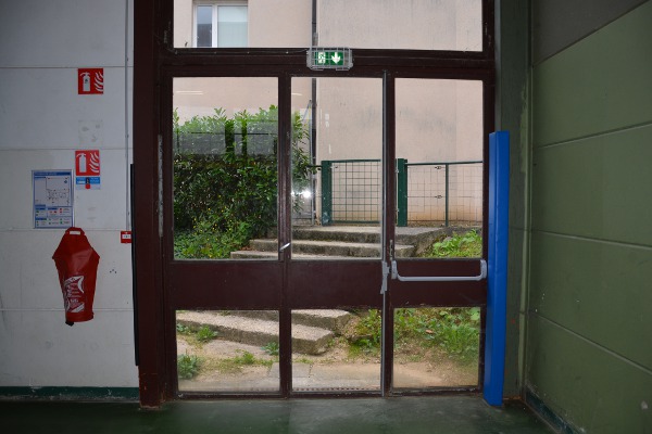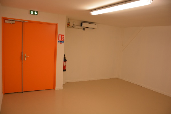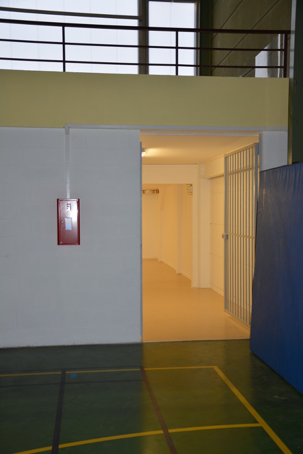 Depuis l’intérieur du gymnase on peut accéder au deuxième local technique de rangement.