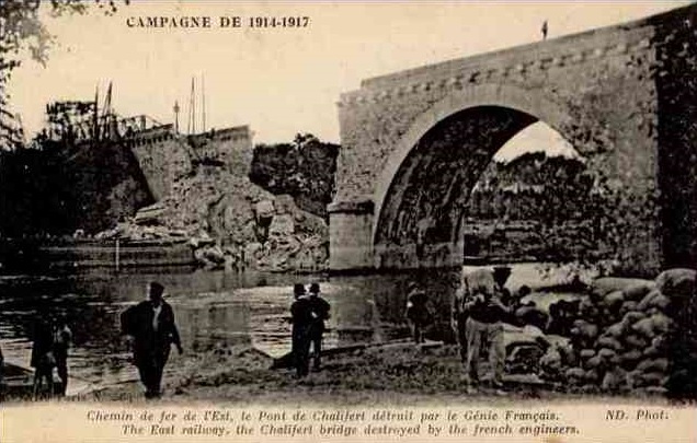 Les trains ont roulé entre Paris et Meaux pendant dix jours, et iront bientôt jusqu’à Chalons où était l’Etat Major la dernière fois que nous en avons entendu parler. N’est-ce pas là du travail assez vite fait ? Et avec trois grands ponts à construire. Mais l’armée avait besoin de la route, et les ingénieurs étaient au travail cinq jours après la bataille. Il y a des trains mais ils sont peu nombreux. Il n’y en a pas encore au niveau de notre embranchement. Aussi avons-nous dû aller à Esbly. Cela a pris deux heures pour atteindre Paris, à peine plus d’environ18 kilomètres. Nous avons roulé au ralenti la plupart du temps, et atteint péniblement à travers le tunnel ce côté de Lagny. Nous étions alors de ce côté de la Marne. Le train faisait entendre des bruits aigus et des sifflements, longtemps avant que nous ne commencions à être brinquebalés le long du pont inachevé, avec des ouvriers accrochés aux derricks et aux échafaudages dans toutes sortes de positions périlleuses et d’attitudes grotesques. Je fus contente quand tout cela fut terminé. |