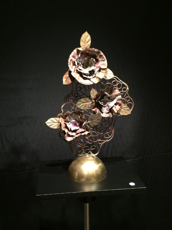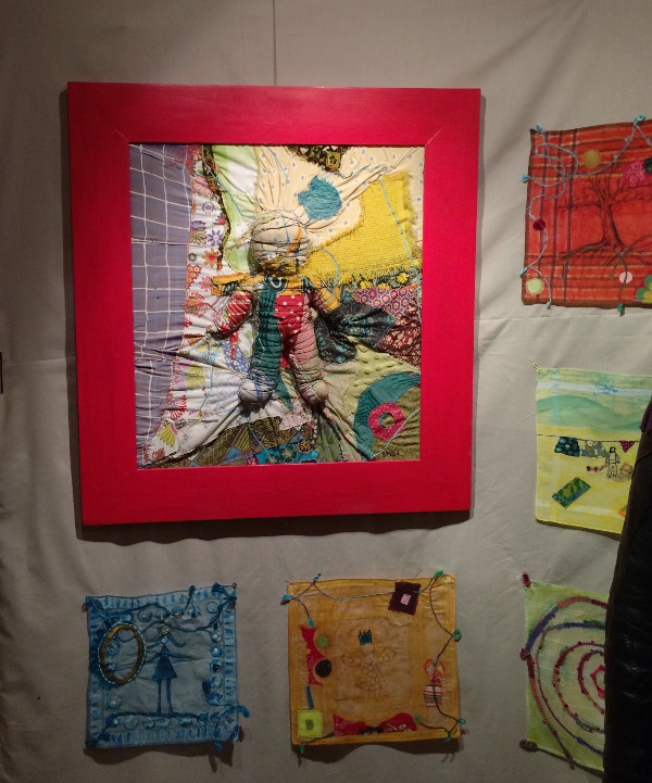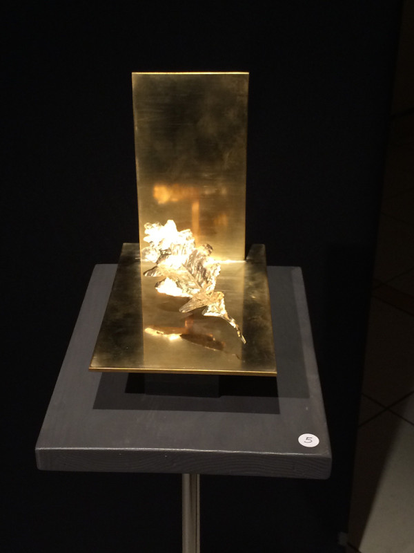 Nous arrivons et Martine nous accueille avec ce sourire chaleureux qu’on lui connaît, nous saluons tour à tour chacune de nos hôtesses, une atmosphère de douceur nous enveloppe, baignée par une lumière tamisée, nous échangeons nos impressions avec les personnes qui nous sont familières et faisons connaissances avec d’autres. Un buffet dont le héros principal est le Brie de Meaux (hum… comme il était bon !) nous attend au fond de la salle. Je vous avoue avoir goûté également l’excellent Bordeaux qui m’a été servi. Je vous propose de regarder les photos des œuvres présentes ce soir-là et pour lesquelles j’ai demandé l’autorisation à chacune des artistes, en vue de les mettre en ligne sur notre Site des Brionautes. Œuvres réalisées par Sylvie Gaudin