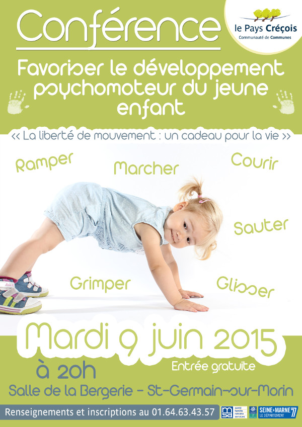 La Maison de la Petite Enfance du Pays Créçois organise une conférence sur le thème « favoriser le développement psychomoteur du jeune enfant » le mardi 9 juin 2015 à 20h (Salle de la Bergerie à St-Germain-sur-Morin).