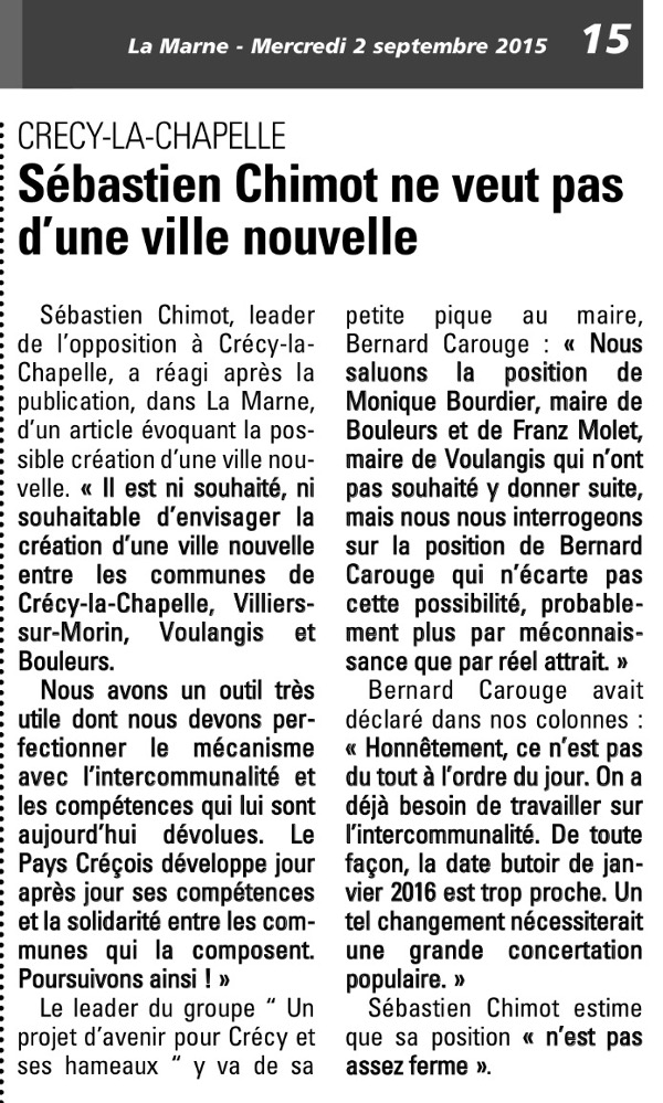 La Marne de la semaine dernière :   Et celle de cette semaine:   Enfin, le Pays Briard du 8 septembre :   Ainsi que cet article du Parisien : |