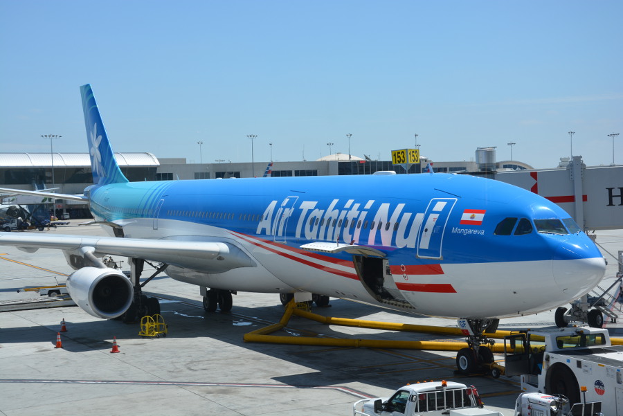 Tout commence par un voyage de 11h à bord d’un avion de Air Tahiti Nui. Cette compagnie basée à Papeete, francophone comme il se doit, possède 5 avions qui rallient la polynésie via Tokyo ou Los Angeles. Je vous la recommande