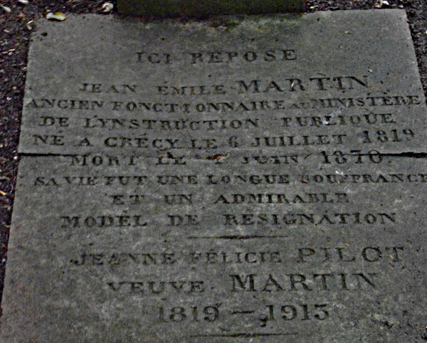 Tombe n°1 : Jean Martin père de Jean-Emile et grand-père de Félix Auguste Emile