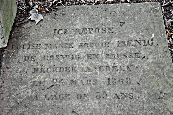 Tombe n°6 : Louise Marie Sophie Koenig, servante de Jean et de son épouse